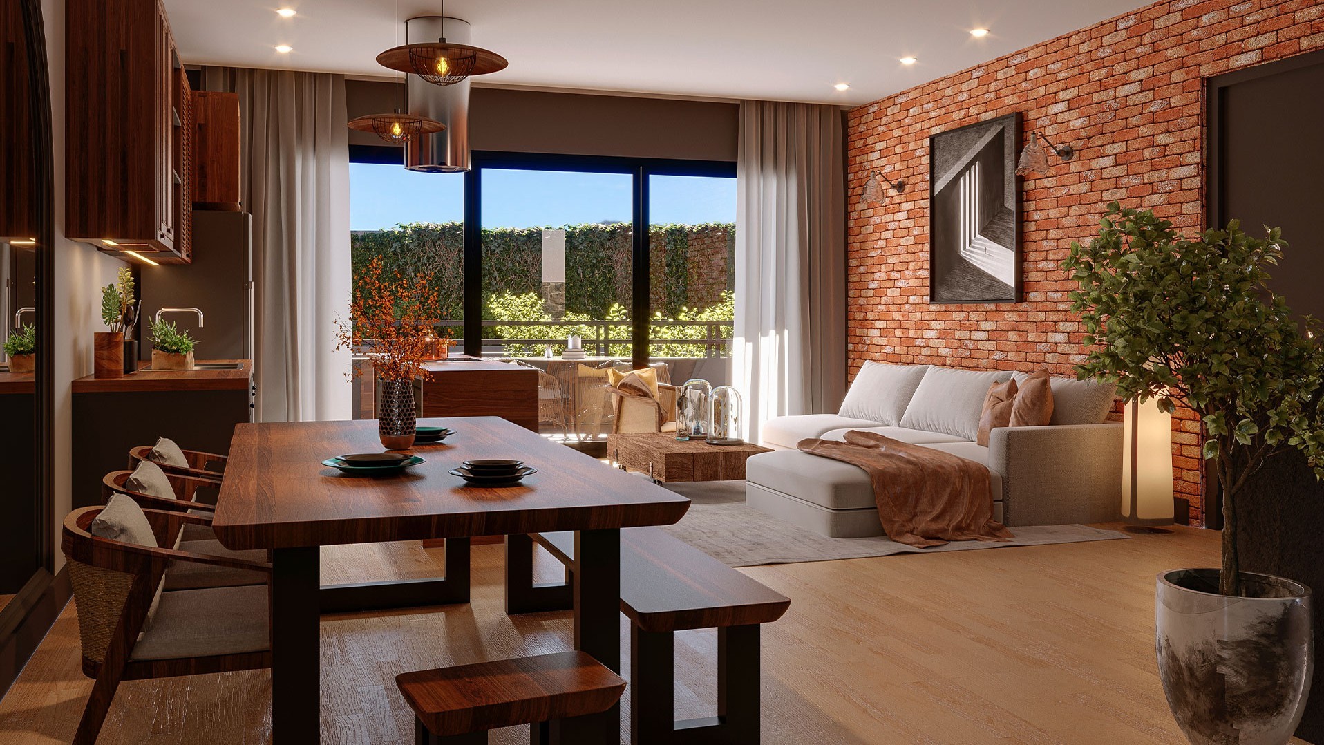 La movilidad vertical y horizontal fluye sin interrupciones en cada nivel. Todos los espacios se articulan con una lógica que favorece la integración social sin comprometer la privacidad. La terraza de cada departamento logra una conexión sensorial plena con el entorno.